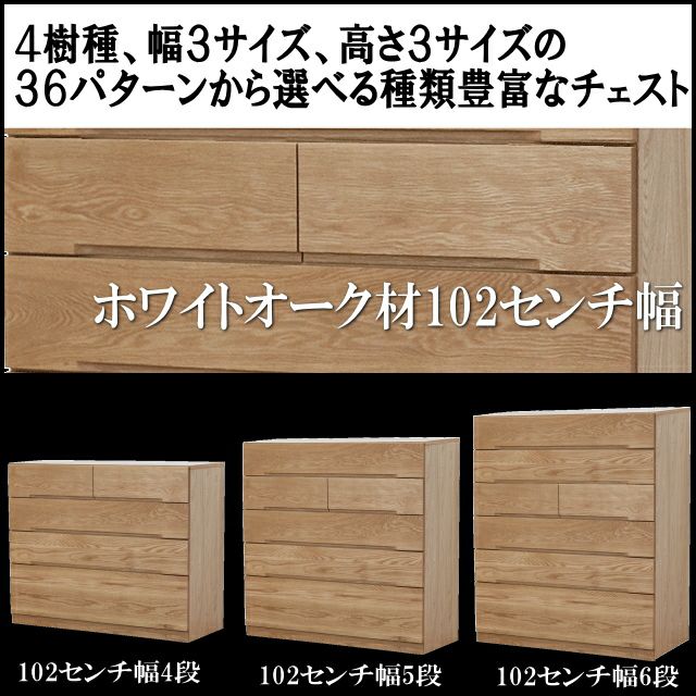 4. 【102cm幅】ナチュール ホワイトオーク材チェスト 4段・5段・6段