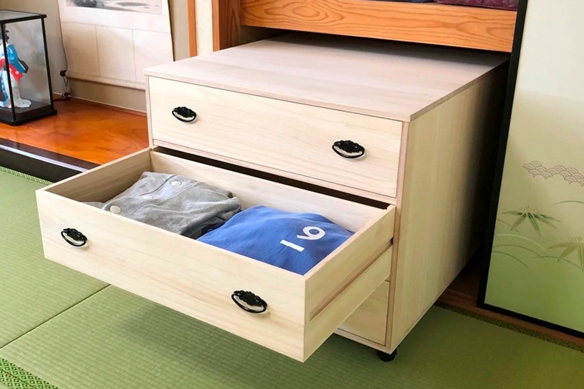 桐材はとても軽く柔らかい材で、古くからタンスに使われています。