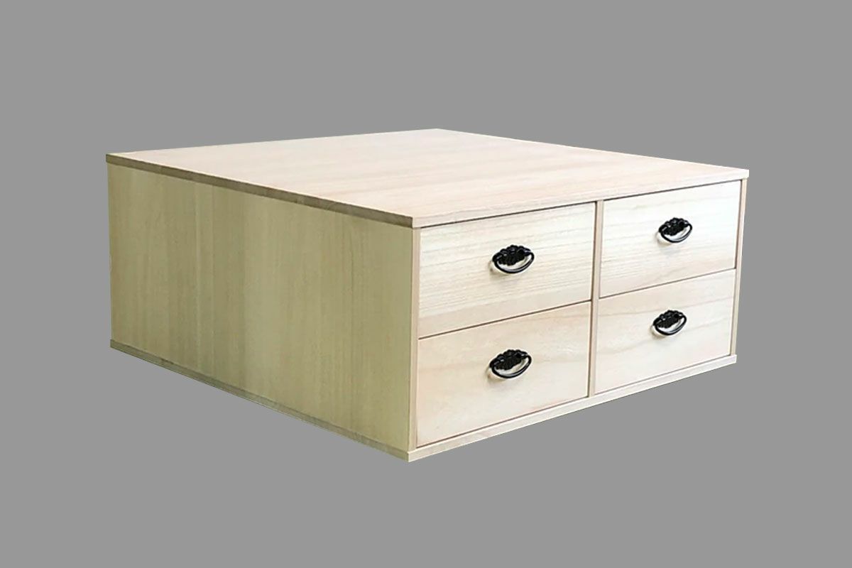 木材が膨張・変形しやすい木材です。その為、湿気が多すぎるだけでも引出があきにくくなる事もございます。