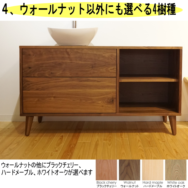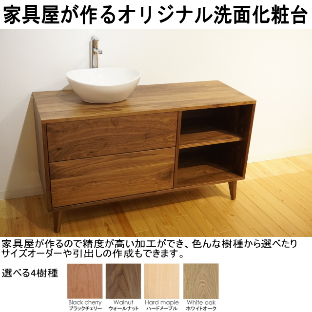 【幅120 奥行45 高さ67.7】ウォールナット無垢オリジナル洗面化粧台、洗面ボールは別売り サイズ変更可能
