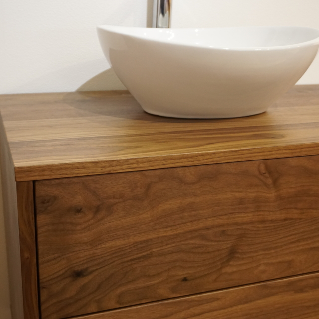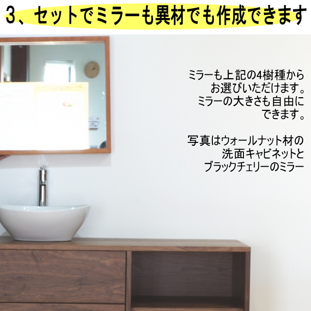 ウォールナット無垢天然木の洗面化粧台をオーダーメイド