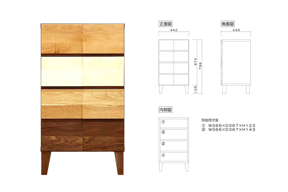 前板 : アルダー・メープル・ホワイトオーク・ウォールナット無垢材