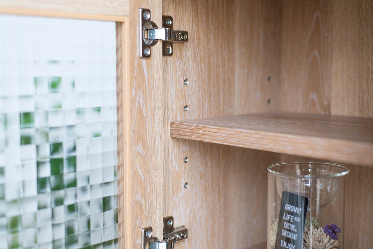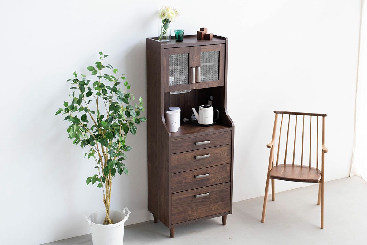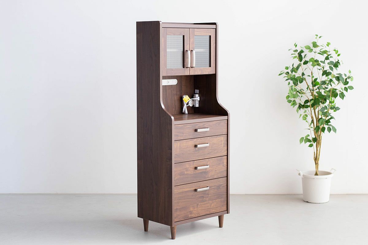 奥行の内寸が45cm以上ある食器棚。ヘルシオなど奥行があるスチームオーブンも置けるタイプです(オーブンレンジのサイズはご自身でご確認ください)