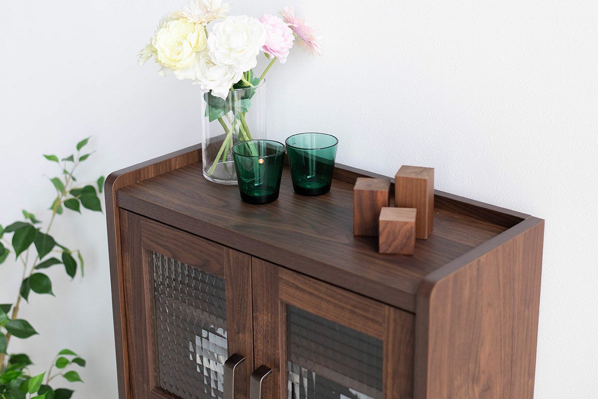 テーブルの天板やキャビネットで裏側も化粧仕上げをし、背面が見えてもおかしくない商品。