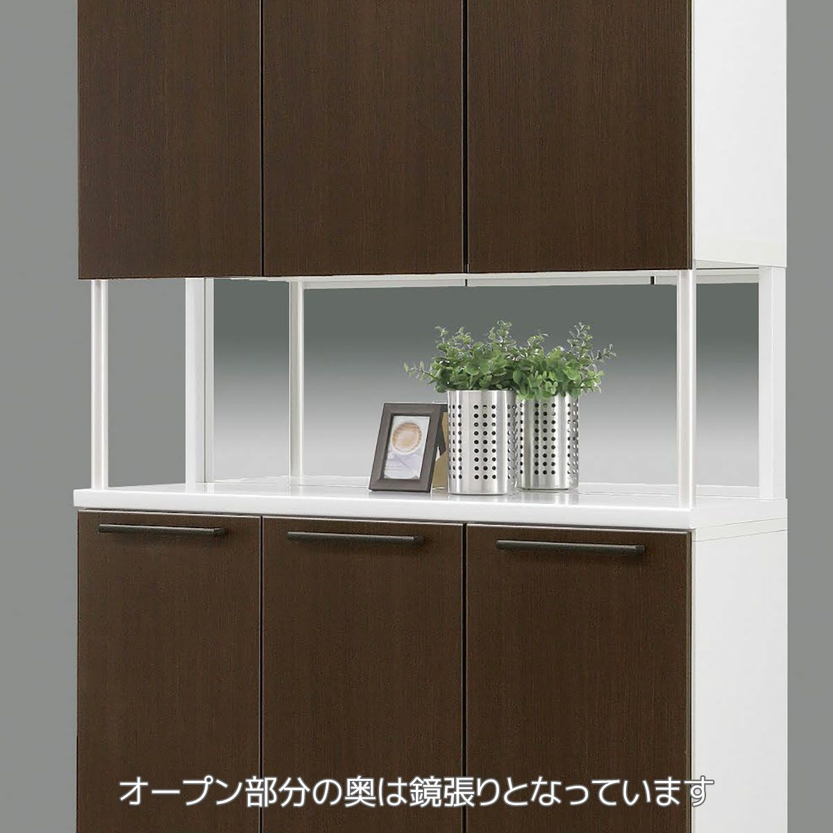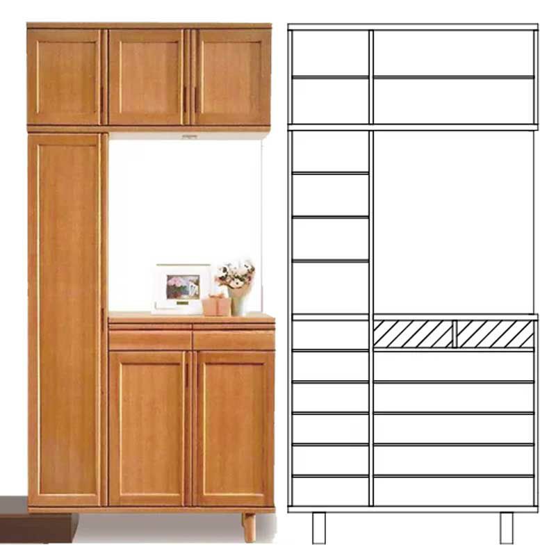 | 奥行の内寸が45cm以上ある食器棚。ヘルシオなど奥行があるスチームオーブンも置けるタイプです(オーブンレンジのサイズはご自身でご確認ください) | |