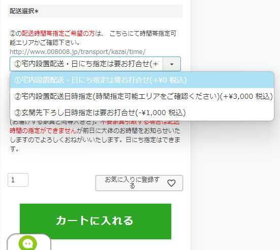 ①は配送のお日にちは指定できます。ですが時間帯が指定できません。