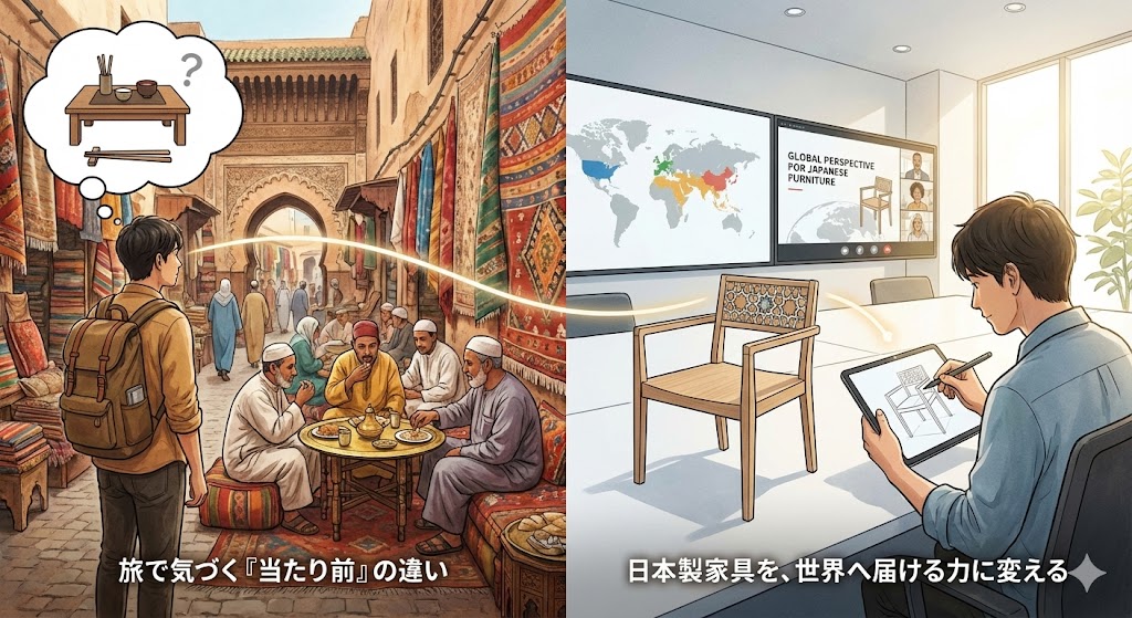 その感覚は、日本製家具をどう伝えるか、海外のお客様にどう届けるかに、