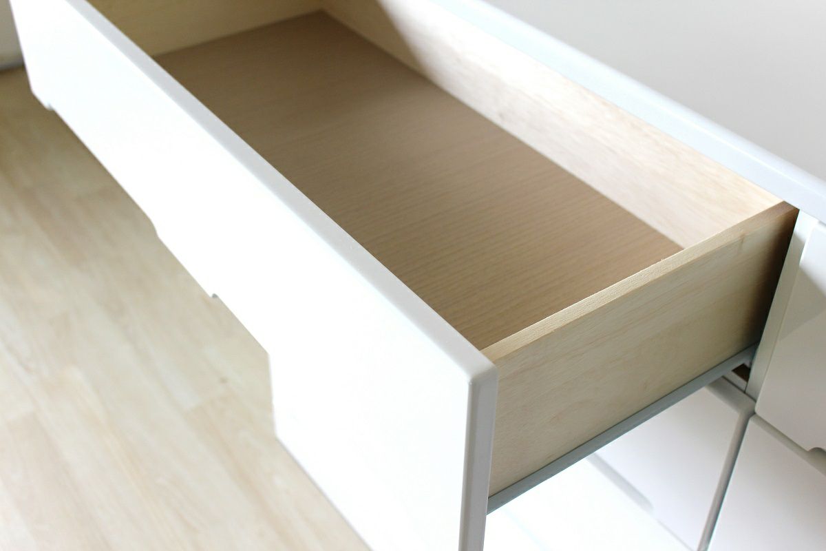 | テーブルの天板やキャビネットで裏側も化粧仕上げをし、背面が見えてもおかしくない商品。 | |