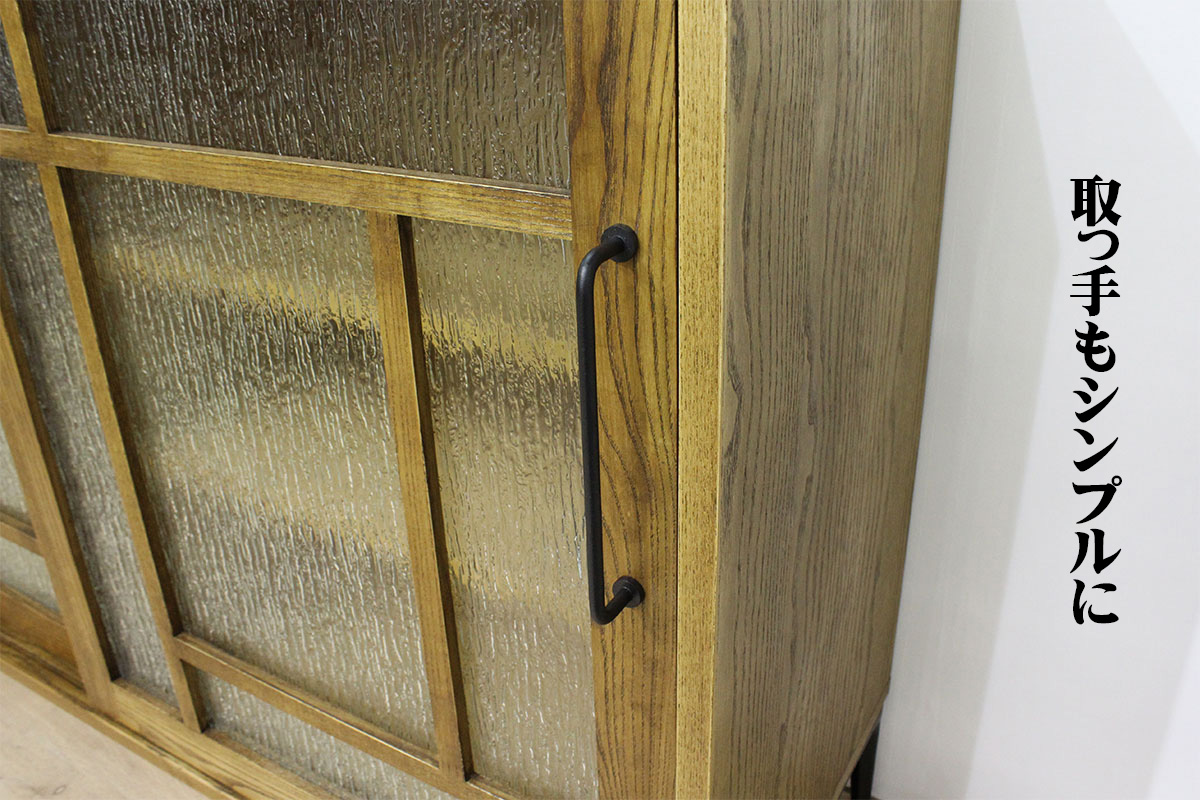 ・レトロなデザインガラスと強度のあるアッシュ無垢材を扉に使用