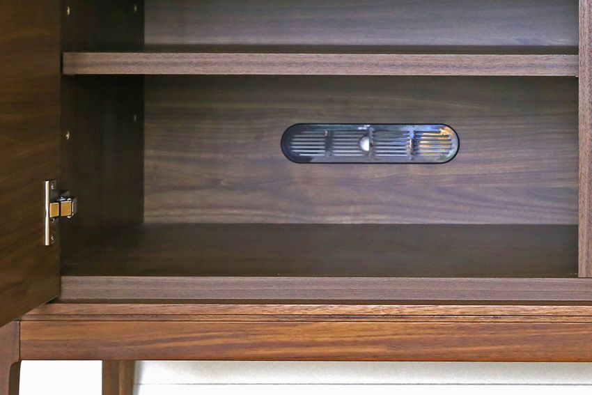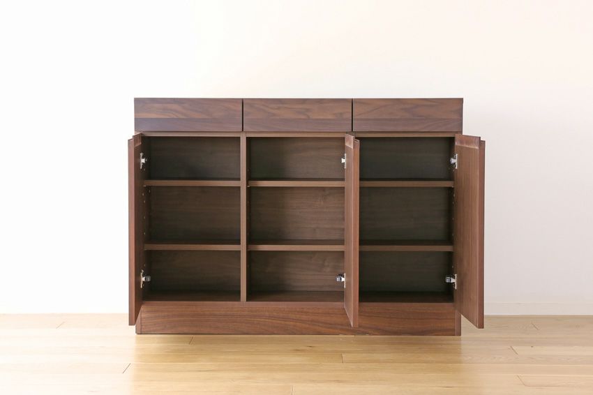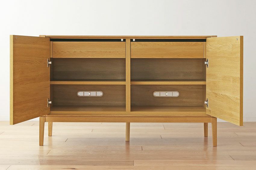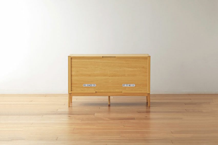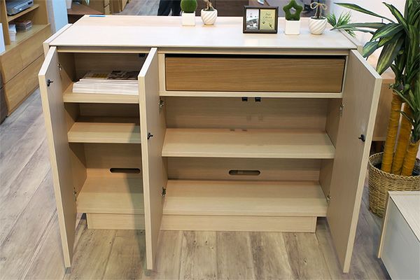 | テーブルの天板やキャビネットで裏側も化粧仕上げをし、背面が見えてもおかしくない商品。 | |