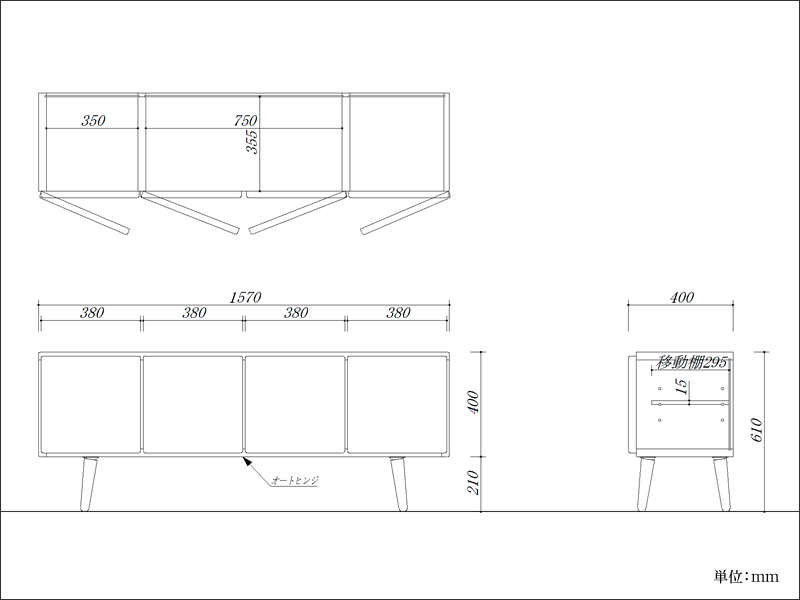 幅157 奥行40 高さ61(脚高さ21)