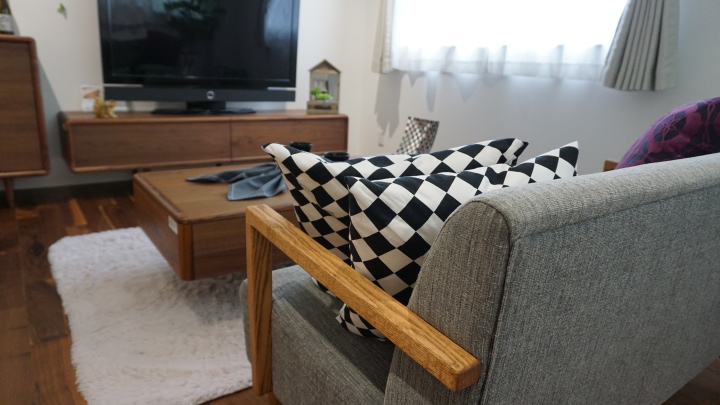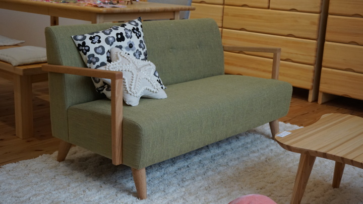 木の肘掛けソファーが欲しいお子様がいる家庭の悩みは、小さい子供がこの肘掛けて頭や顔を打った時に痛いこと。