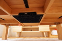 無垢の天板を使い質感がよく、ヒーターも薄型で邪魔にならないため、