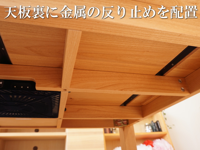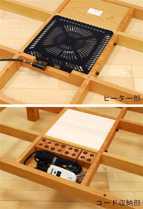 無垢材コタツの弱点である反りや割れが極力ないようにしています。