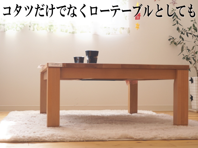無垢テーブルのこたつ、シンプルなデザインで一年中使えます
