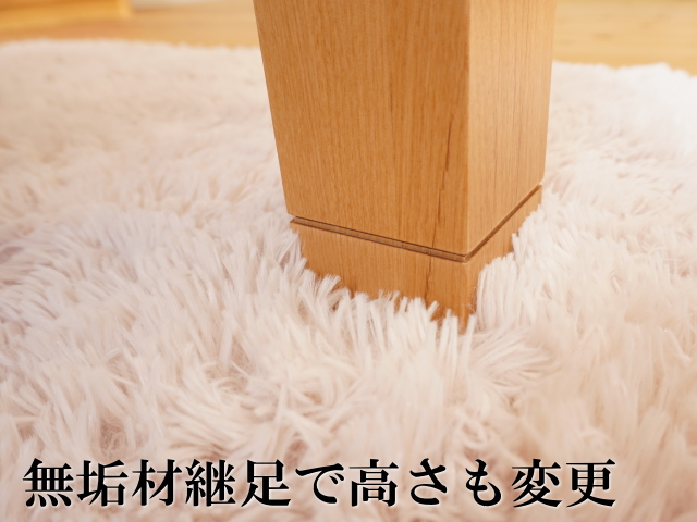 今回ご紹介するこのこたつは、天板はもちろん脚も同種の天然木無垢材を使い、