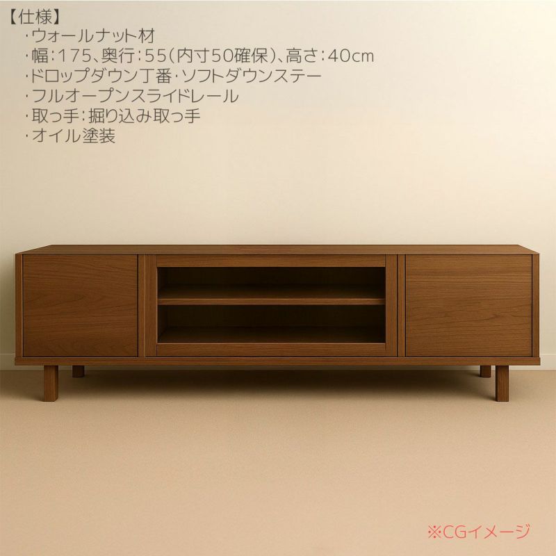 ウォールナット材を使用したテレビボード。