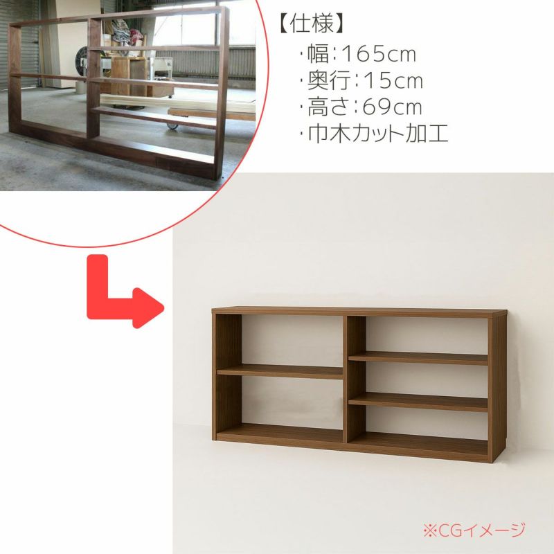 ・幅:150、奥行:15、高さ:69cmで作ってほしい ・巾木カット加工も希望 ・棚は固定になりますか?