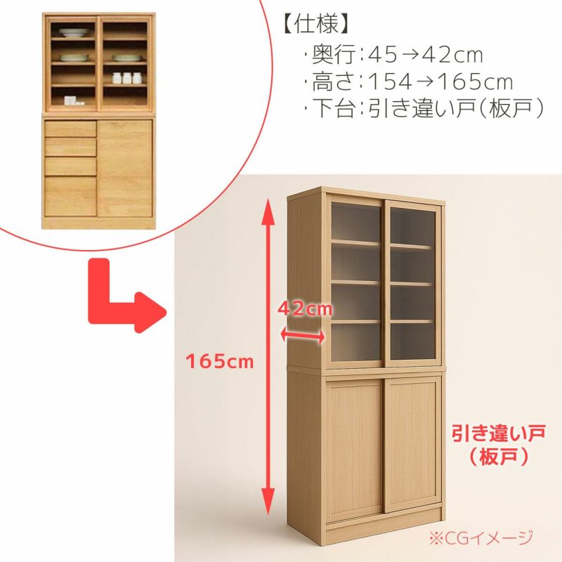 ・奥行を42cm、高さを165cmにしたい ・下台は引き出しではなく、上台と同じようにしたい ・その際、中身が見えない様にしたい