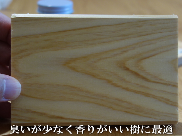 オイルの臭いが少ないので、ヒノキや杉など木の香りを大切にしたい樹種に向いています。