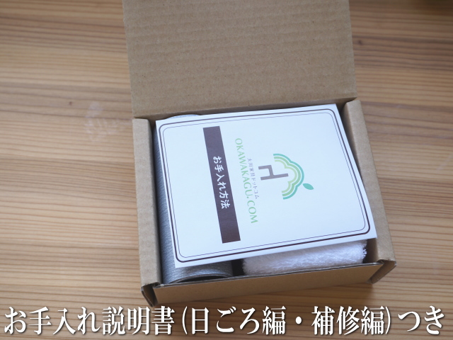 お手入れ説明書、日ごろ編と補修編がついてきます。