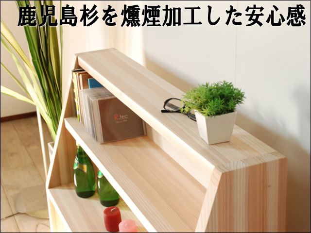 この本棚は、鹿児島県産の杉を燻煙乾燥加工したものを使用しています。