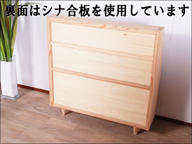 裏面は、よくあるベニア板のむき出しではなく、シナ化粧合板を使用しています。