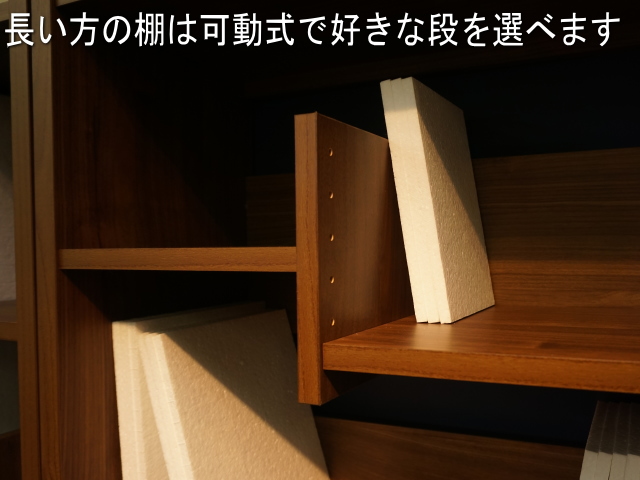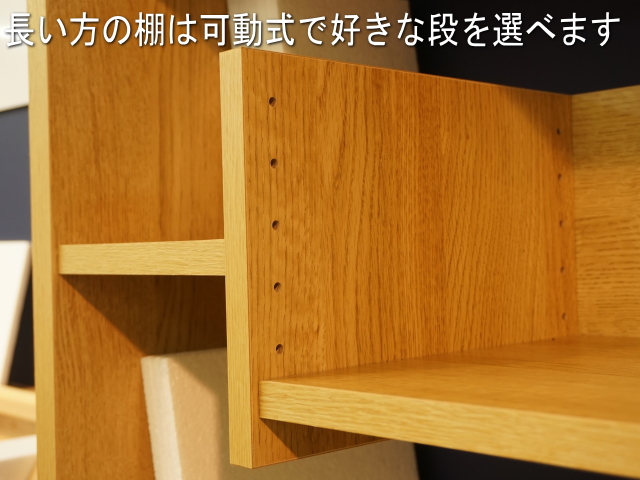 長い方の棚は可動棚でお好みの高さに設定できます。