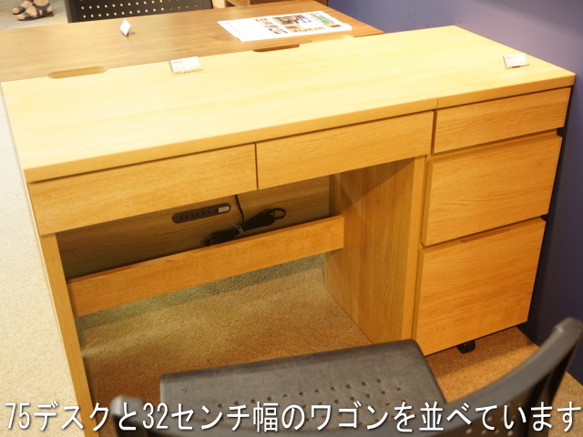 75センチ幅デスクと32センチ幅デスクを並べて、