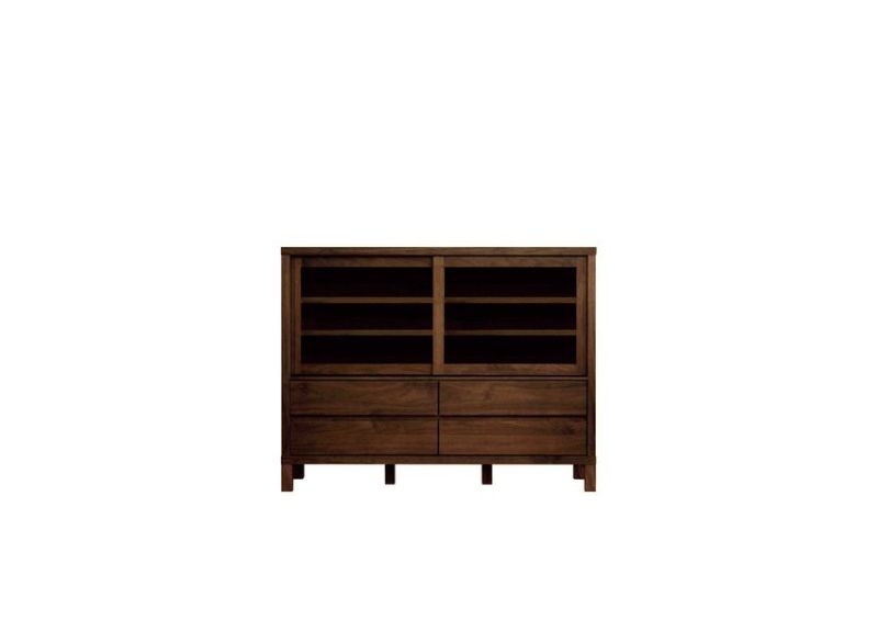 【幅115 奥行42 高さ89.5】引き戸式の食器棚カノ 115ローカップボード(ウォールナット無垢材)
