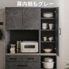前面・側面は最近人気のグレー色で石目調の柄が入ってます。グレーはシンプルな色なので、飽きが来にくく、他のアイテムを変えるだけで模様替えができます。また、組み合わせの幅が広く、丈夫な国内工場組立により長く使えると思います。