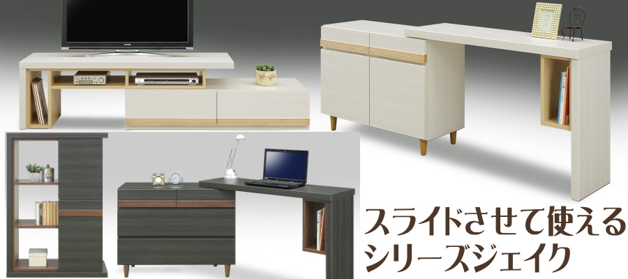 スライドさせて使えるデスクリビング収納シリーズジェイク