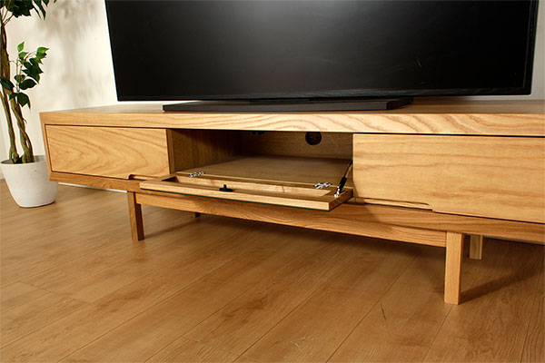 | 美しいホワイトオークの木目を前板に再現し、シンプルでスリムな印象のオペラシリーズ。ツヤ消しで落ち着いた大人な雰囲気のテレビボードです。