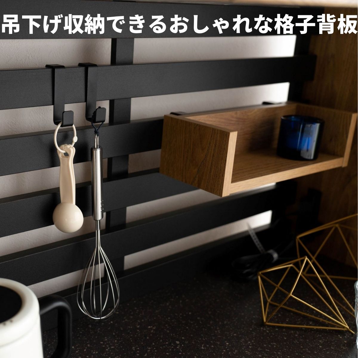 この食器棚だと、食器棚の背板部分を横格子にし吊下げ金具も付属で付いてくるので、手軽に吊下げ収納できます。