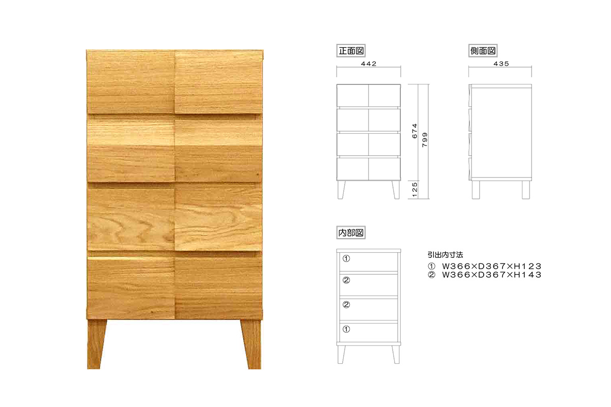 モデルノ 44-4段チェスト(ホワイトオーク)