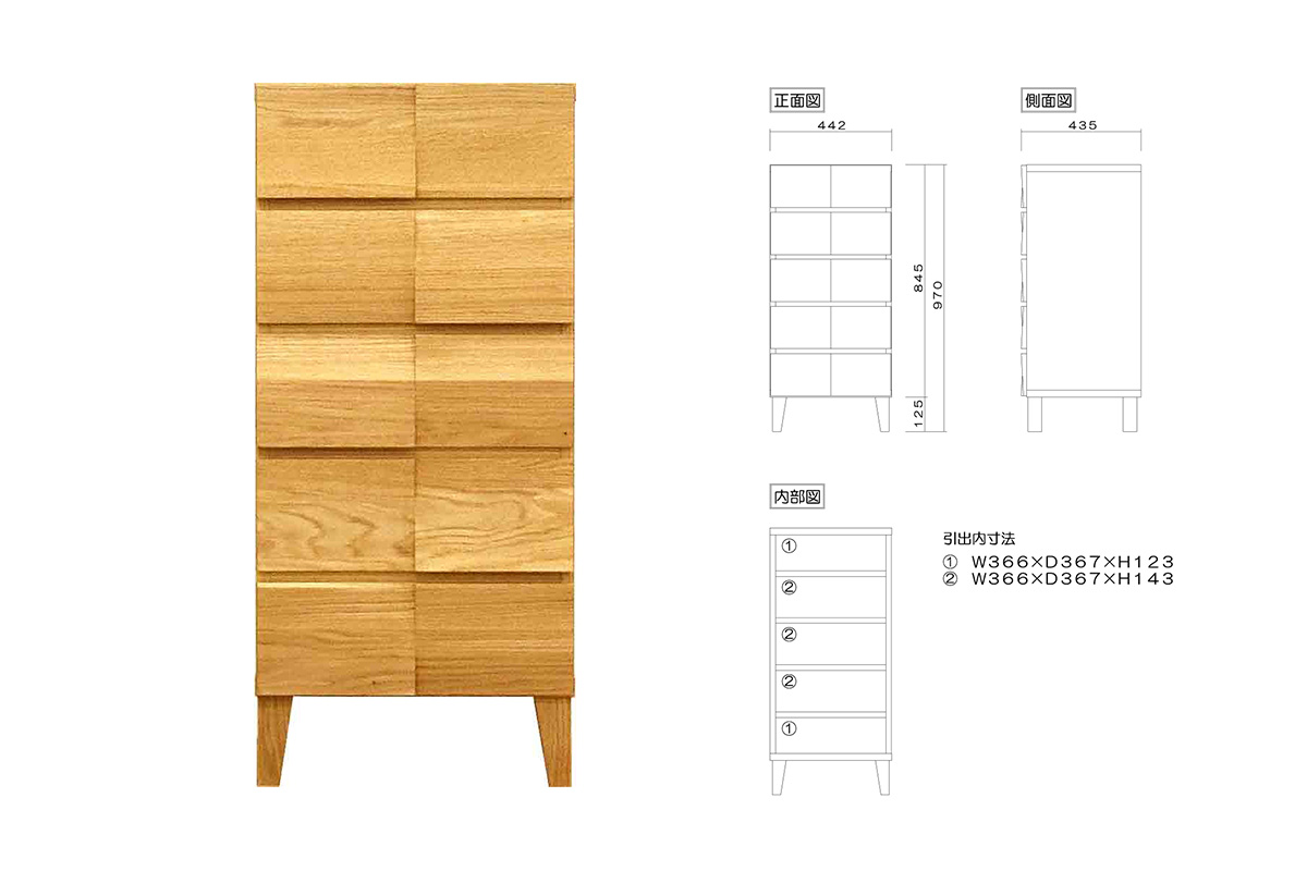 モデルノ 44-5段チェスト(ホワイトオーク)