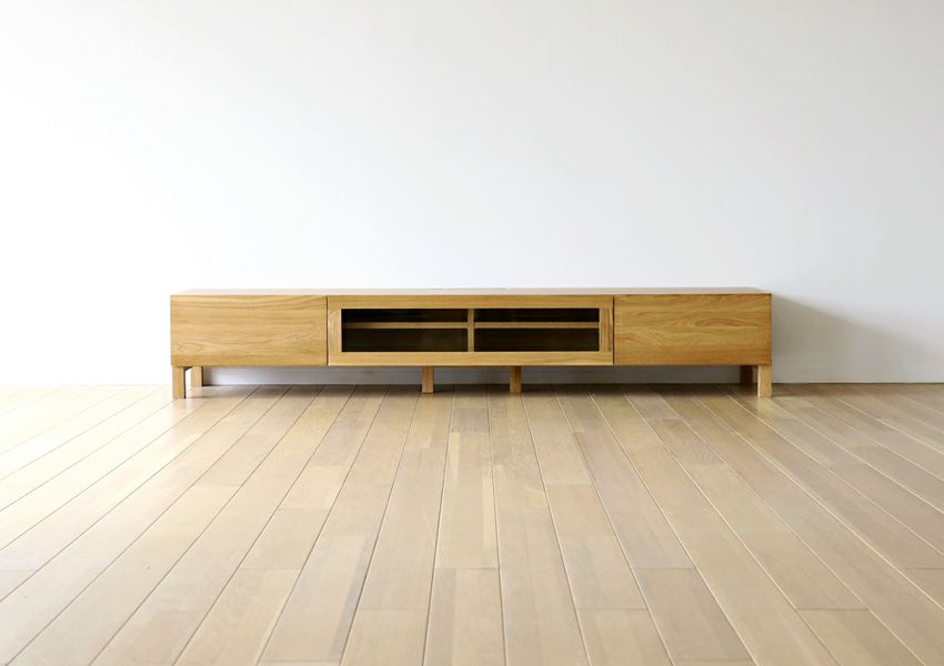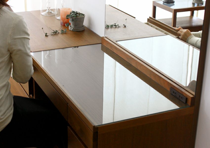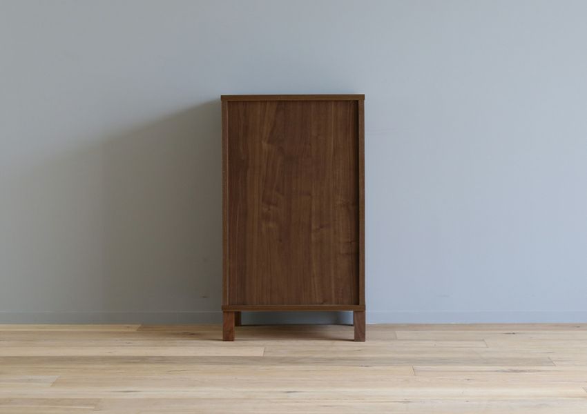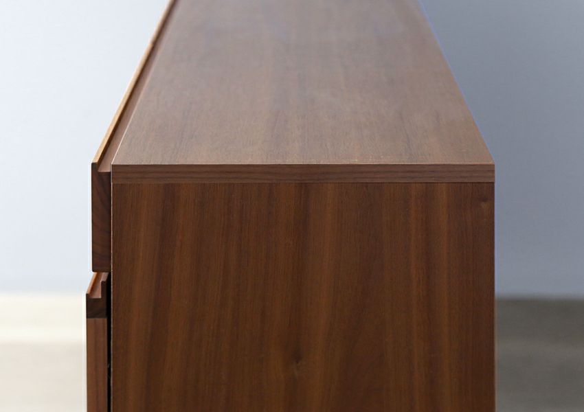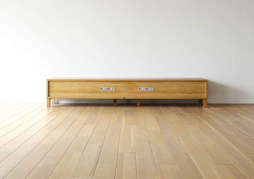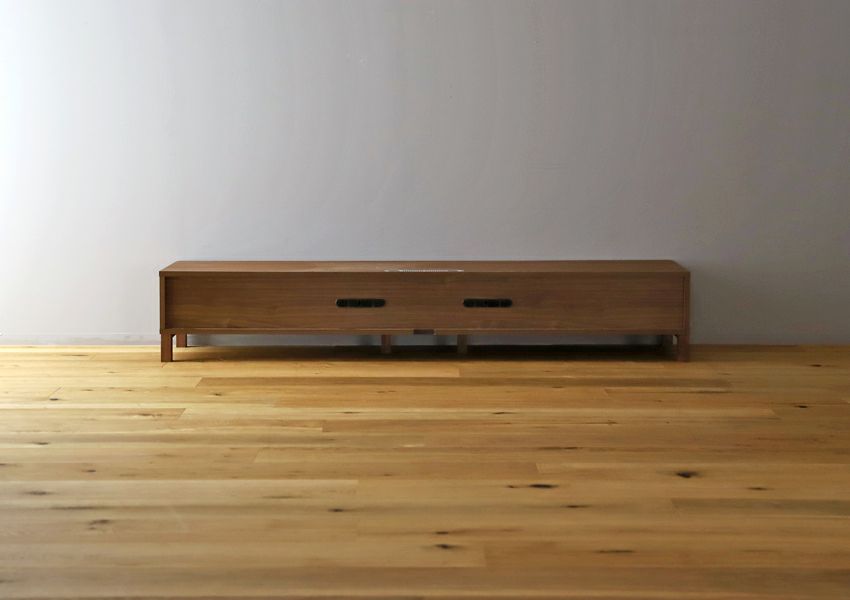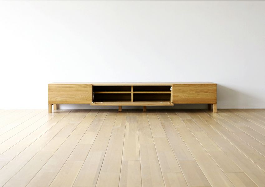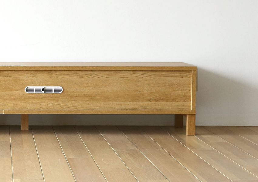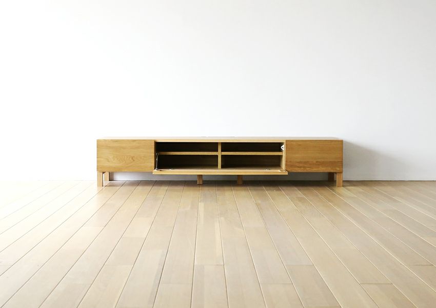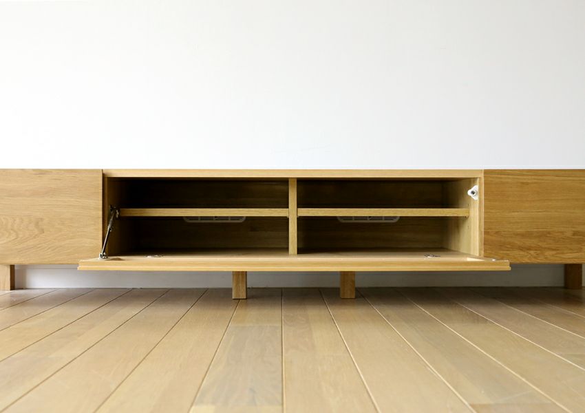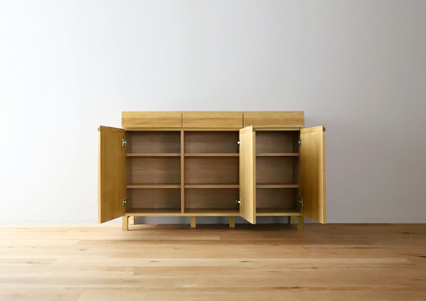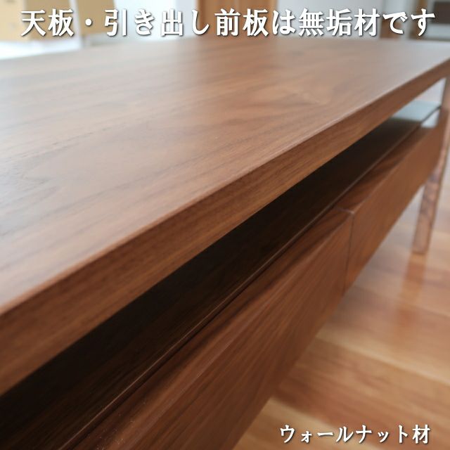 テーブルの天板やキャビネットで裏側も化粧仕上げをし、背面が見えてもおかしくない商品。