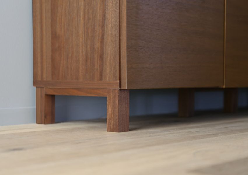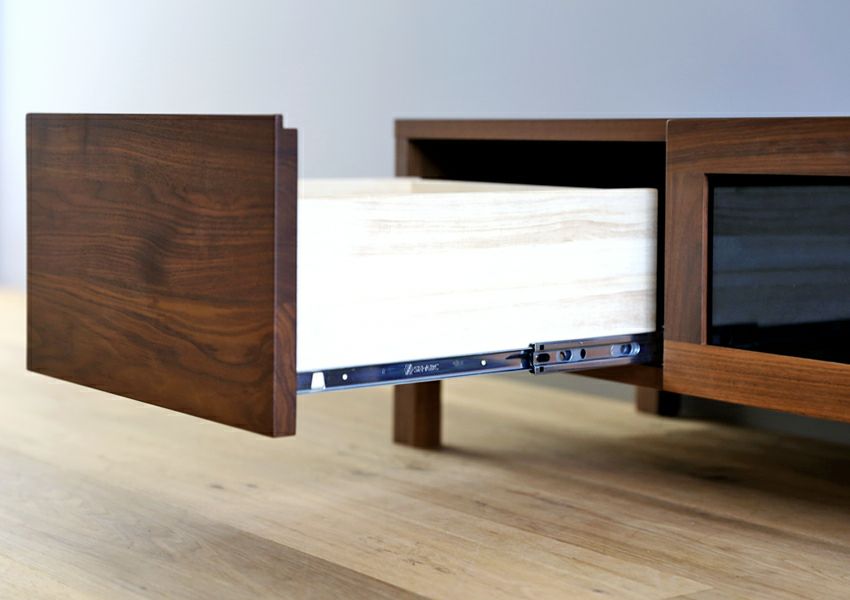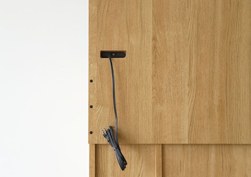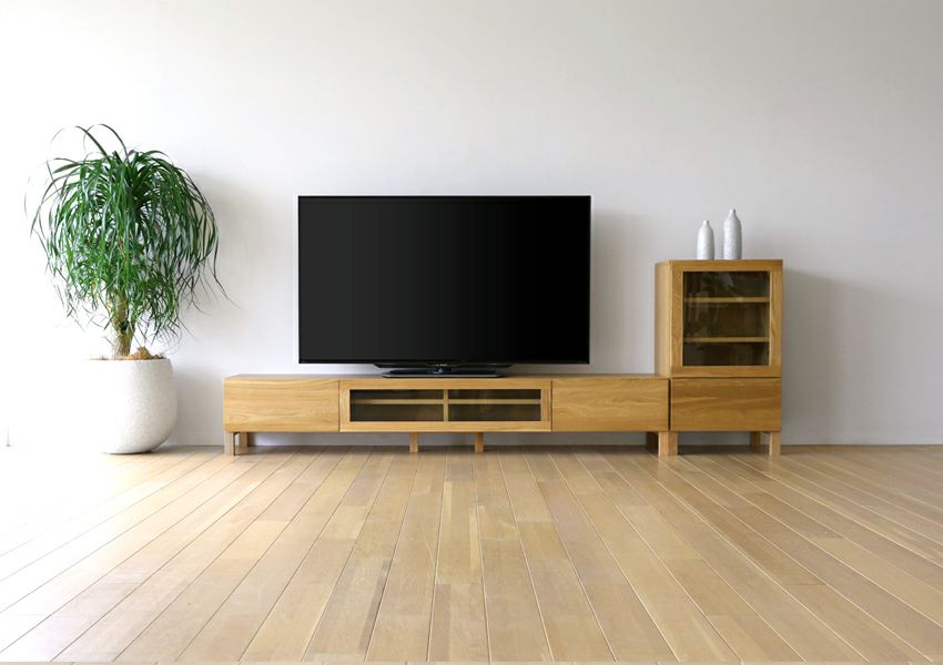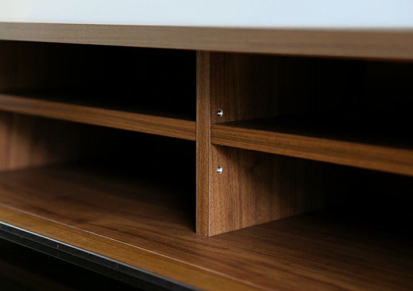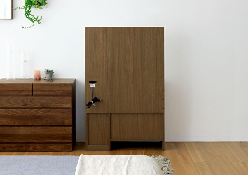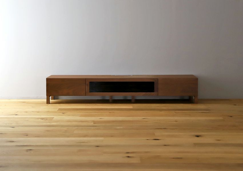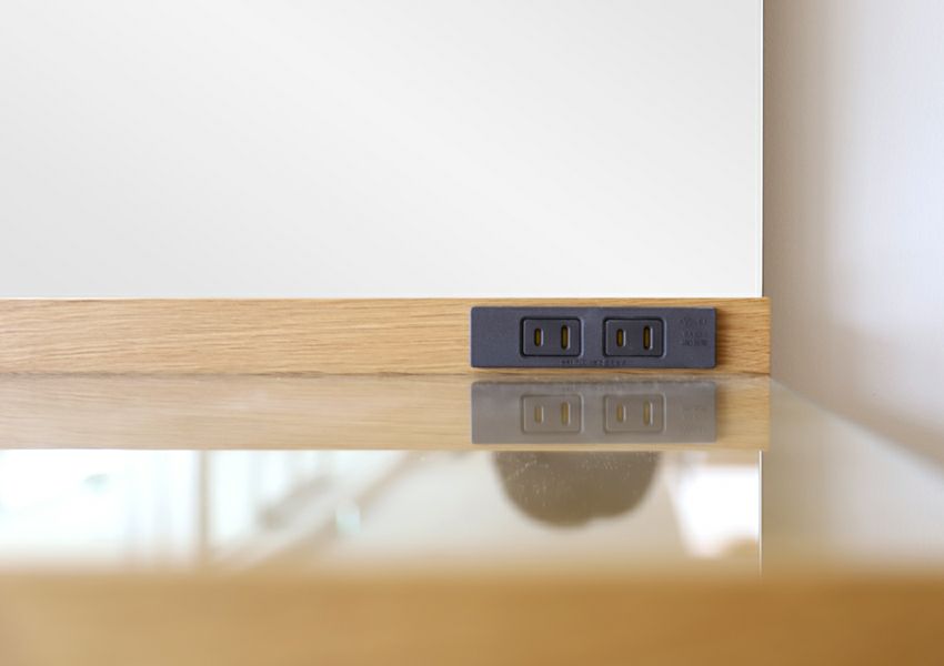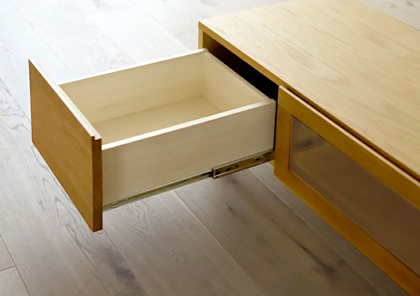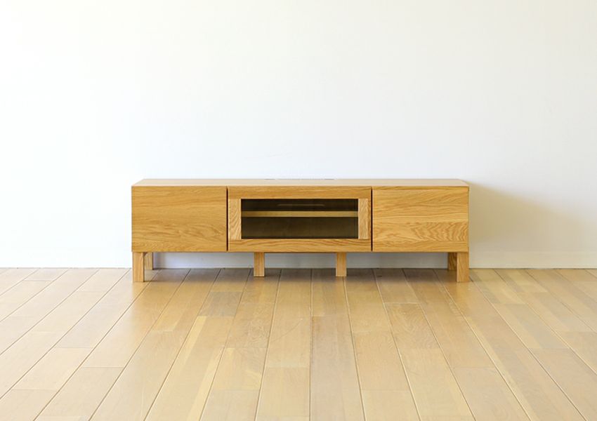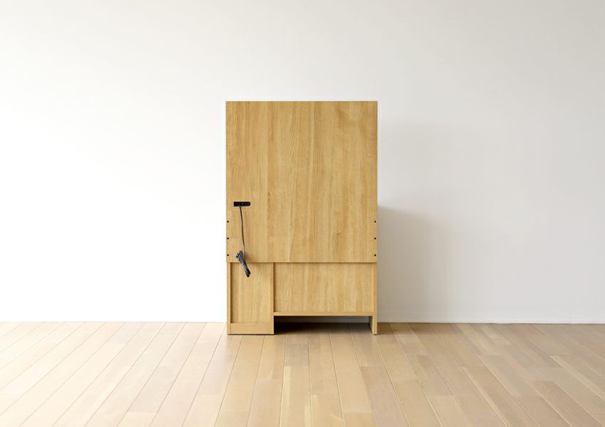 テーブルの天板やキャビネットで裏側も化粧仕上げをし、背面が見えてもおかしくない商品。