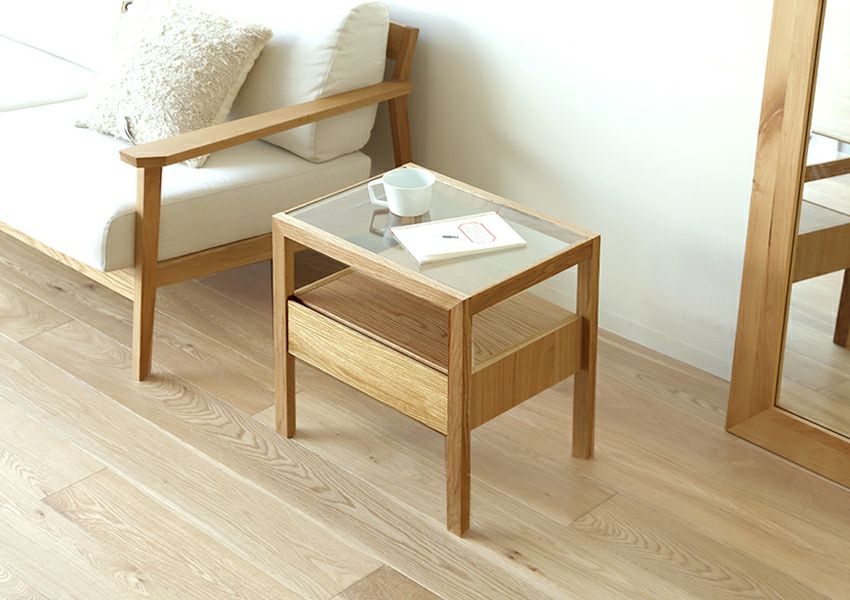 植物由来のオイルを塗装に使った家具。木材本来の手触りや風合いが楽しめます。
