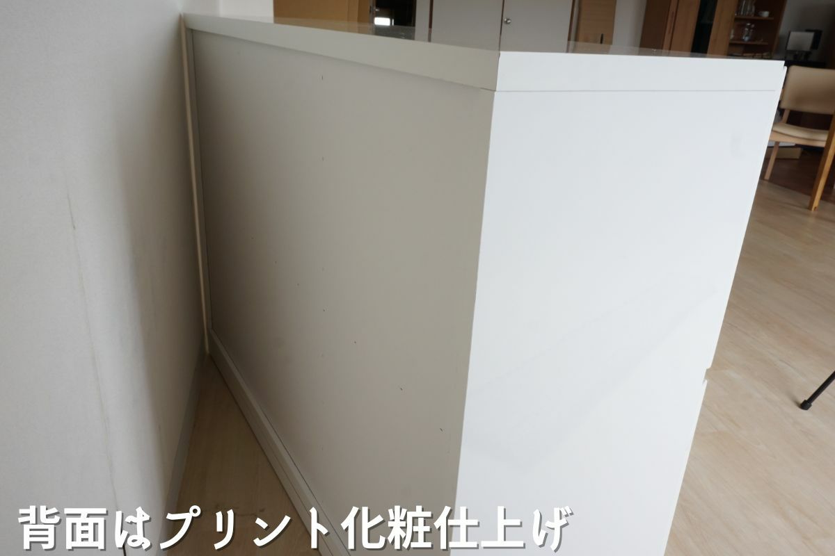 | テーブルの天板やキャビネットで裏側も化粧仕上げをし、背面が見えてもおかしくない商品。 | |
