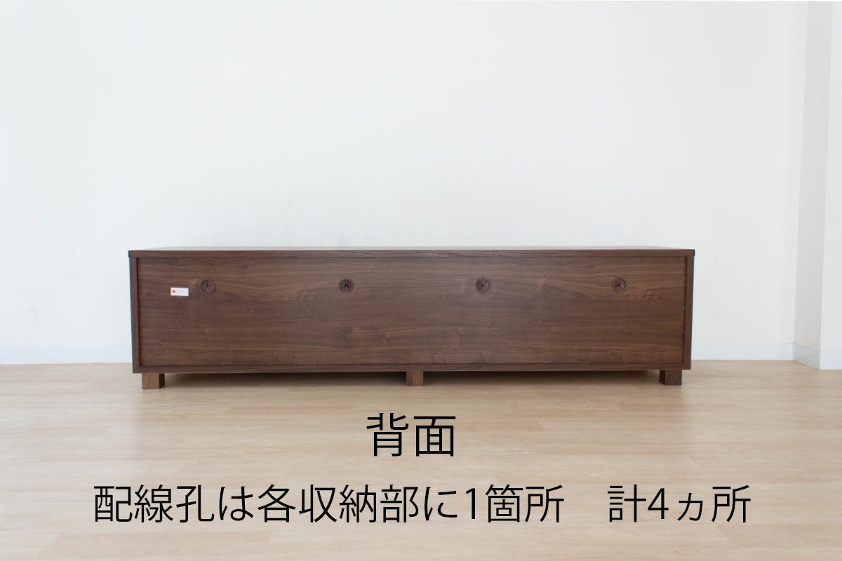 このテレビ台は前面、側面、天板にウォールナット天然木を使用しています。