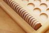 このコマは、自然塗装をして、何度もヤスリで磨き、すべすべの触感になるようにしています。