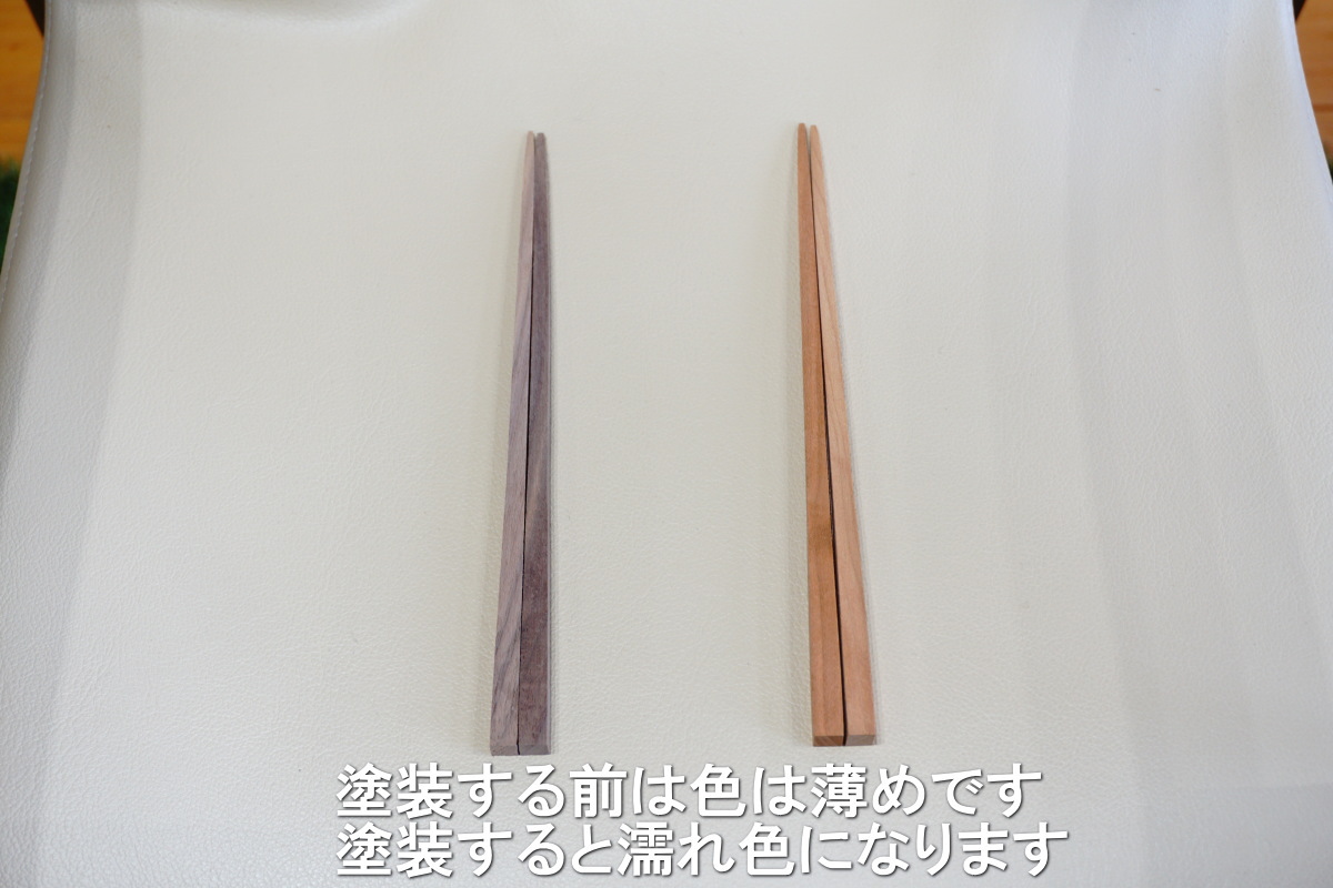 家具で人気の材、ウォールナット材とブラックチェリー材のお箸が作れます。