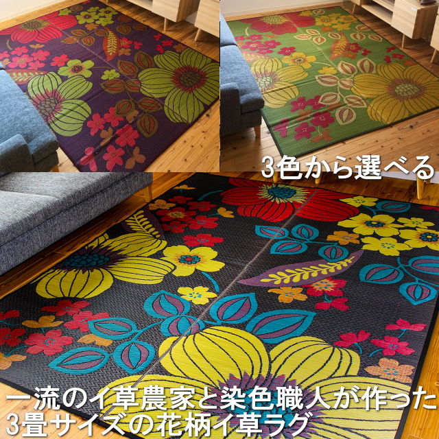熊本県産い草ラグ マット191×250cm 3畳サイズ 華の恵ふっくら