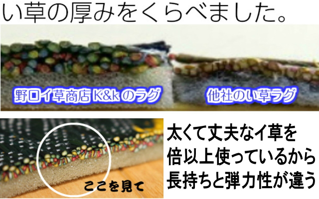 長く使ってほしいから、こちらのい草マットはい草量を通常の2倍使っています。