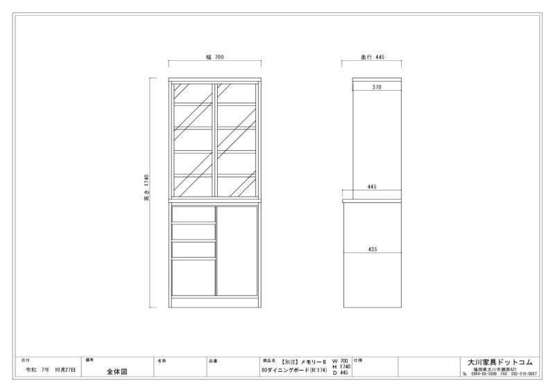 【別注】引き戸式の食器棚メモリーⅡ 幅80センチダイニングボード高さ174センチ
