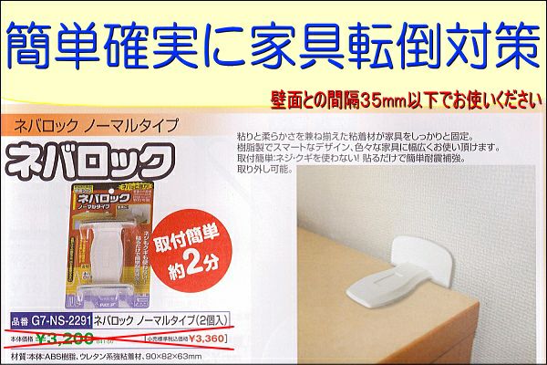 釘ネジいらずの簡単家具転倒防止ネバロック