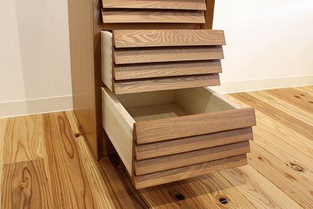 別注も可能で、素材は無垢を使用し、タモ、ウォールナット、ブラックチェリー、ヒノキなど、大川で手に入る一般的な素材にはすべて対応しています。