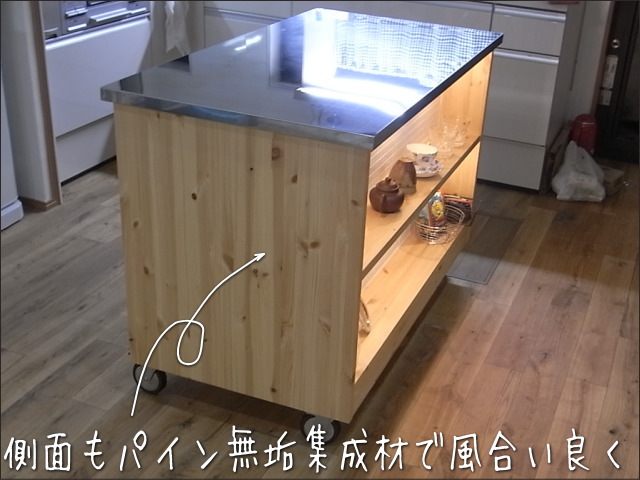 このキッチン作業台は、フレームをパイン材の集成無垢材で組んでいます。