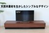 商品特徴 1、外観は天然木つき板のシンプルで上質な佇まい 2、天板、前面だけでなく側面にも天然木つき板を使用 3、23.2cm高と低いので、大型テレビでも見上げなくていい 4、引出し内部も黒塗装し、デザイン的統一感 5、内部は引出しとデッキスペースで収納も万全 だから、 大型テレビを置くのに圧迫感のない上質な空間にしたい方にピッタリ ・外観は天然木つき板のシンプルで上質な佇まい このテレビボードは、天然木つき板を見える範囲に使用していますので、 デザインをシンプルにし、天然目の良さを活かせるデザインになっています。 ・天板、前面だけでなく側面にも天然木つき板を使用 前面だけでなく、天板、側面も天然木つき板を使用。 通常設置時に見える範囲はすべて天然木ですので、 上質なインテリアにピッタリです。 ・23.2cm高と低いので、大型テレビでも見上げなくていい このテレビ台の高さは23.2cmと低めに作られています。 昨今の大画面テレビでテレビ台の高さが高いと見上げる形になり、 首が疲れたり目に良くなかったりするので、 低めに作りテレビ視聴時の疲れを低減しています。 ・引出し内部も黒塗装し、デザイン的統一感 前板下部はブラックガラス、本体内部もブラック色にし、 前板を締めたときにテレビ台が浮いているような感じにしています。 また、ブラックガラスなので、リモコンも使えます。 ・内部は引出しとデッキスペースで収納も万全 前扉内は、中央引き出し、両サイドがデッキスペースになっています。 引き出しはDVDやブルーレイを背表紙を上にしてぴったり収まる高さに。 デッキスペースの内寸高は19センチありますので、 背が高めのAVアンプなども収納できます。 (ご自身のデッキのサイズをご確認ください) また、背面があいてますので、排熱や配線効率にも優れてます。 天板前面は無垢材を使い、L 字加工しています。 これは、前板の手がかりが良くなるのと、 質感、デザイン工場のために施されています。 レイリーシリーズの過去の質問